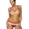 A lovely two-piece swimsuit designed for medium to larger breasts. A real treat. Angled inserts on the cups, slightly sporty design, great cut and colours which make you feel the climate of summer at once. If you are looking for something fashionable and comfortable, you have come to the right place. The cups are professionally modelled, padded and enriched with underwire at the base. They do a great job of gathering, lifting, keeping in place and shaping the bust properly. They create a nice neckline. C and D cups have an additional light push up padding to improve body proportions. Other cups (from E to H) are without push up. The straps are adjustable in length, the circuit holds well, is flexible and comfortably fastened with a buckle.Panties slightly higher, the front on the lining, with a contrasting trim. They look great and are sure to give you the comfort you desire on the beach.
