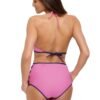 One of the best swimsuits of the Summer 2019 collection! Beautiful colors, trendy cut, high bottoms and push-up bra. Order it and plan your perfect vacation! The bra is comfortably tied at the neck and back, has padded cups, which are enriched with push-up, thanks to which the breasts are perfectly gathered, lifted and enlarged (the push-up filling comes in every size of the swimsuit and is not removable from the model). The cleavage is made of smooth black tulle. On the cups there is an insert of fabric imitating sensual lace. The briefs are a real hit: they are higher and thus very comfortable, they also mask the tummy, and thanks to the stripes-rubbers on the sides they still look feminine and tempting. Italian fabric, beautiful colours to choose from. Be tempted, because it is worth it.