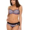 Ethno-pattern is a pattern which successfully entered the latest swimwear collection of Marko producer. In this edition the swimsuit is two-piece, colorful and very sexy. The bra has padded cups with underwiring and push-up, and its cut resembles a well-known and popular bardot. Skillfully collects and lifts the breasts, optically enlarging them. Push-up comes in every size of the swimsuit and is not removable from the model. The straps can be completely removed from the model. The waist ties are tied up at the back for a perfect fit. The panties with decorative ties on the hips, classic, insertion and very comfortable cut.