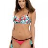 Impressive, very feminine swimsuit with floral bra and smooth, tied at the sides bottom set. The floral top looks stylish and romantic. Thanks to well shaped cups, you can quickly gather and lift the breasts, enlarging them optically. The costume includes push-up filling, which allows to enlarge breasts by more than one size, maintaining beautiful, natural effect (push-up filling is included in each size of the costume and it is not removed from the model). The swimsuit has a comfortable tying at the back and shoulder straps which may be completely removed from the model. The panties are tied at the sides and finished with flirtatious tassels – thanks to these ties you will surely adjust the size of the panties to your needs. High quality Italian fabric.