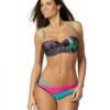 The bra has padded cups covered with a nice, printed pattern in beautiful, exotic colours. The lower part (as well as the sides) has underwiring which shapes the breasts. S, M, L, XL sizes additionally have pockets for attached (removable) push up pads. Place them in the cups and your bust will rise, breasts will come closer to each other and enlarge sexually, creating the neckline of dreams. Circuit bra is elastic, with buckle fastening at the back. Adjustable straps, they can be completely unfastened and you can comfortably sunbathe.