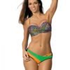 The bra has padded cups covered with a nice, printed pattern in beautiful, exotic colours. The lower part (as well as the sides) has underwiring which shapes the breasts. S, M, L, XL sizes additionally have pockets for attached (removable) push up pads. Place them in the cups and your bust will rise, breasts will come closer to each other and enlarge sexually, creating the neckline of dreams. Circuit bra is elastic, with buckle fastening at the back. Adjustable straps, they can be completely unfastened and you can comfortably sunbathe.