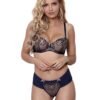 Perfectly cut thong combination of satin soft microfiber, gold, rich shimmering embroidery and transparent tulle.