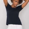 Ladies’ t-shirt with short sleeves, round neckline. Slit in the back.