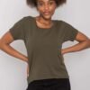 Ladies’ t-shirt with short sleeves, round neckline. Slit in the back.