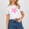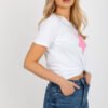 Women’s T-shirt with short sleeves and a round neckline. Decorative print on the front.