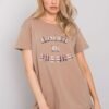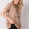 Women’s t-shirt in a looser cut, with short sleeves and a round neckline. Decorative inscription on the front.