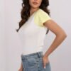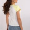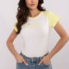 The women’s T-shirt in a casual style is a combination of comfort and trendy design. Made of soft, ribbed cotton with added elastane, it provides comfort and excellent fit to the silhouette. The classic, round neckline and short sleeves are made of contrasting material, which gives the shirt a unique character. A stylish print with inscriptions is placed on the front, emphasizing the modern and relaxed style. The standard length makes the T-shirt look great with both jeans and skirts, creating a versatile base for everyday stylizations.