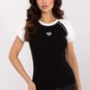 The women’s T-shirt in a casual style is a combination of comfort and fashionable design. Made of soft, ribbed cotton with a touch of elastane, it ensures comfort and perfect fit to the silhouette. The classic, round neckline and short sleeves are made of contrasting material, giving the shirt a unique character. A stylish heart-shaped print is placed on the front, emphasizing the modern and casual style. The standard length makes the T-shirt perfect to pair with both jeans and skirts, creating a versatile base for everyday styling.