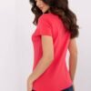 Women’s t-shirt in a casual style, perfect for everyday wear. Made of high-quality blend of cotton and elastane, it provides softness, comfort, and freedom of movement. The classic, smooth design makes it easy to match with different stylings. Standard length, short sleeves, and round neckline emphasize its versatile character. A must-have in every wardrobe!