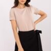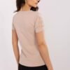 Women’s t-shirt in a casual style, perfect for everyday wear. Made of a soft blend of cotton and elastane, it provides comfort and flexibility, adapting to the silhouette. Smooth material emphasizes the simplicity and universality of the model. Short sleeves and a round neckline create a classic cut that fits many stylizations. Decorative embroidery on the sleeves adds a subtle, but original accent to the blouse, giving it a unique character. An ideal choice for everyday, casual outfits.
