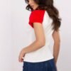 Women’s T-shirt in a casual style is a combination of comfort and trendy design. Made of soft, ribbed cotton with added elastane, it provides comfort and excellent fit to the silhouette. The classic, round neckline and short sleeves are made of contrasting material, giving the shirt a unique character. A stylish print with inscriptions is placed on the front, emphasizing the modern and casual style. The standard length makes the T-shirt perfect to pair with both jeans and skirts, creating a versatile base for everyday styling.