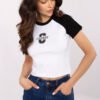 Short women’s T-shirt with embroidery and sequins is a casual model with fashionable details, which will work great in everyday stylizations. Made of soft and stretchy knit fabric of cotton and elastane blend, it guarantees comfort and perfect fit to the silhouette. The T-shirt has a short length, a round neckline and short sleeves in a contrasting color, decorated with sporty stripes, giving it a dynamic, modern character. On the front there is a striking print with embroidery and sequins, which attracts attention and adds shine. Stylish, comfortable and characterful, perfect for everyday wear with jeans, shorts or high-waisted leggings.