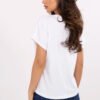 Women’s casual t-shirt is a comfortable and stylish proposition for everyday outings. Made of soft cotton with a touch of elastane, it ensures comfort and freedom of movement throughout the day. The model is of standard length, with short sleeves and a classic, round neckline. On the front, there is a decorative heart-shaped application surrounded by sparkling rhinestones, which add charm and a delicate glow to the blouse. It is the perfect option for women who value comfort with a hint of romantic style.