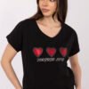Women’s casual t-shirt is a comfortable and stylish proposition for everyday outings. Made of soft cotton with elastane addition, it ensures comfort and freedom of movement throughout the day. The model is of standard length, with short sleeves and a classic, round neckline. On the front, there is a decorative heart-shaped application surrounded by shiny jet stones, which add charm and a delicate glow to the blouse. This is the perfect option for women who value comfort with a hint of romantic style.
