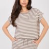 Women’s T-shirt of standard length, made of thick, high-quality cotton that ensures durability and comfort for all-day wear. The natural, breathable material makes the shirt perfect for everyday styling, regardless of the season. The model in a casual style stands out with a dominant striped pattern, giving it a timeless character. Short sleeves and a classic, round neckline emphasize the universal cut and make the T-shirt perfect to pair with jeans, skirts, or shorts. This is an ideal proposal for women who appreciate comfort, simplicity, and timeless design.