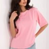 Women’s basic t-shirt with a casual character is an indispensable element of everyday wardrobe. The smooth cut makes it extremely versatile and easy to style, it goes well with both jeans, skirts or sporty trousers. Made of high-quality cotton and elastane blend, it provides comfort, breathability, and delicate fitting to the silhouette. Standard length and short sleeves make the model perfect for everyday wear, regardless of the season. The t-shirt has a classic, round neckline that emphasizes its timeless and versatile style.