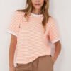 Women’s striped t-shirt is a classic proposal in a casual style, perfect for everyday wear. The timeless pattern gives it a universal character, making it work well in many outfits, both with jeans, skirts or shorts. A model of standard length with short sleeves and a round neckline ensures comfort and freedom of movement. Made of soft, breathable cotton, it is pleasant for the skin and perfect for everyday use. It is a basic wardrobe piece that combines comfort with a simple, stylish look.