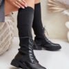 Women’s boots made of a combination of eco-leather and textile material. The model stands out with rounded toes, which guarantee comfort. The interior of the shoes is lined with a shoe blanket, limited to the part of the foot. The elastic shaft with lacing gives a modern, stylish character.
