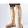 Beige flat classic boots Christien are the perfect shoes for cold days. Equipped with an innovative zip closure system, they ensure quick and comfortable putting on and taking off the boots. The rubber sole guarantees excellent grip on various surfaces, making these boots ideal for both city and countryside strolls. Their classic design with a round toe adds elegance and timeless character. The cut of the shoes is designed to perfectly fit the foot, providing comfort even during long walks. The flat heel allows for stable and confident steps, which is particularly important when walking on slippery surfaces. These boots are not only stylish, but also very functional. Their warm interior protects against frost and cold, keeping the foot comfortably warm at all times. Perfect for winter months, these beige flat classic boots Christien are an indispensable addition to any woman’s wardrobe. The outer material is eco-leather zam, and the height of the boot is 43 cm. The product is available in the Autumn/Winter collection.