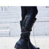 Black creased Angelico boots are an elegant and practical choice for colder days. Their flat heel and almond-shaped nose add a chic touch, and they fit both everyday and more formal outfits. The zipper on the inside makes them easy to put on, and the insulation provides comfort and warmth during winter walks. Made of durable plastic, they are weatherproof. These timeless boots combine classic and stylish, and will be a perfect addition to your closet for any occasion.