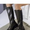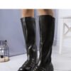 The boots have a convenient zipper closure on the inside of the upper and an elastic insert on the outside, making them easy to put on and fit the foot. Set on a flat heel and a chunky sole with stylish grooves, they provide comfortable all-day wear.
