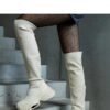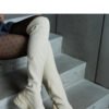 Beige slip-on boots with an elastic collar on a thick sole Lokira