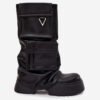 Women’s boots made of high-quality eco leather are the perfect choice for women who value modern design and comfort. The slip-on style makes them easy to put on and perfectly fits the foot, while the chunky platform guarantees stability and comfort during wear, adding a distinctive character to the boots. The model stands out with its eye-catching, turned-down upper and pockets, giving the whole a unique and unconventional look. The stylish design makes these boots fit perfectly into current trends and will be a strong accent in everyday, urban stylizations. They look great both paired with fitted trousers and with short dresses or skirts.