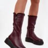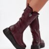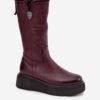 Women’s boots are made of natural leather. This model has a zipper on the side of the upper. The interior is lined with natural wool. The heel counter is stiffened. The boots are set on a massive platform and wedge heel. They have a decorative element on the side of the upper. This model will work great during cold, winter days.