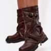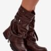 Women’s boots reaching to mid-calf are a stylish proposition for women who appreciate a fashionable look and comfort for everyday wear. The model stands out with an eye-catching, turned-down and delicately pleated shaft. Stylish details such as a decorative strap with a buckle and a decorative zipper attract attention, adding a modern expression and emphasizing their unique appearance. The flat heel guarantees comfort even during long wear, making the boots perfect for everyday use. This fashionable style looks great when combined with fitted trousers, leggings, as well as dresses or skirts, creating stylish and feminine outfits perfect for the autumn-winter season.