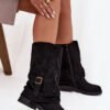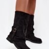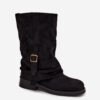 Women’s boots made of eco suede are the perfect choice for women who appreciate style and comfort in one. The model set on a flat heel provides comfort during daily wear, while looking elegant and feminine. The zip closure makes it easy to put on and take off the shoes, increasing their practicality. The eye-catching, turned-down upper decorated with a buckle strap adds a fashionable character to the whole. The soft texture of eco suede emphasizes the look of the shoes, making them a perfect complement to autumn-winter stylings. These boots will work great both with skirts and dresses, as well as with fitted pants, creating a stylish, everyday look.