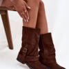 Women’s boots made of eco suede are the perfect choice for women who value style and comfort in one. The model set on a flat heel ensures comfort during everyday wear, while looking elegant and feminine. The zipper closure makes it easy to put on and take off shoes, increasing their practicality. The eye-catching, folded shaft decorated with a buckle strap adds a fashionable character to the whole. The soft texture of eco suede emphasizes the appearance of the shoes, making them a perfect complement to autumn-winter stylizations. These boots will work great both with skirts and dresses, as well as with fitted trousers, creating a stylish, everyday look.