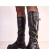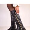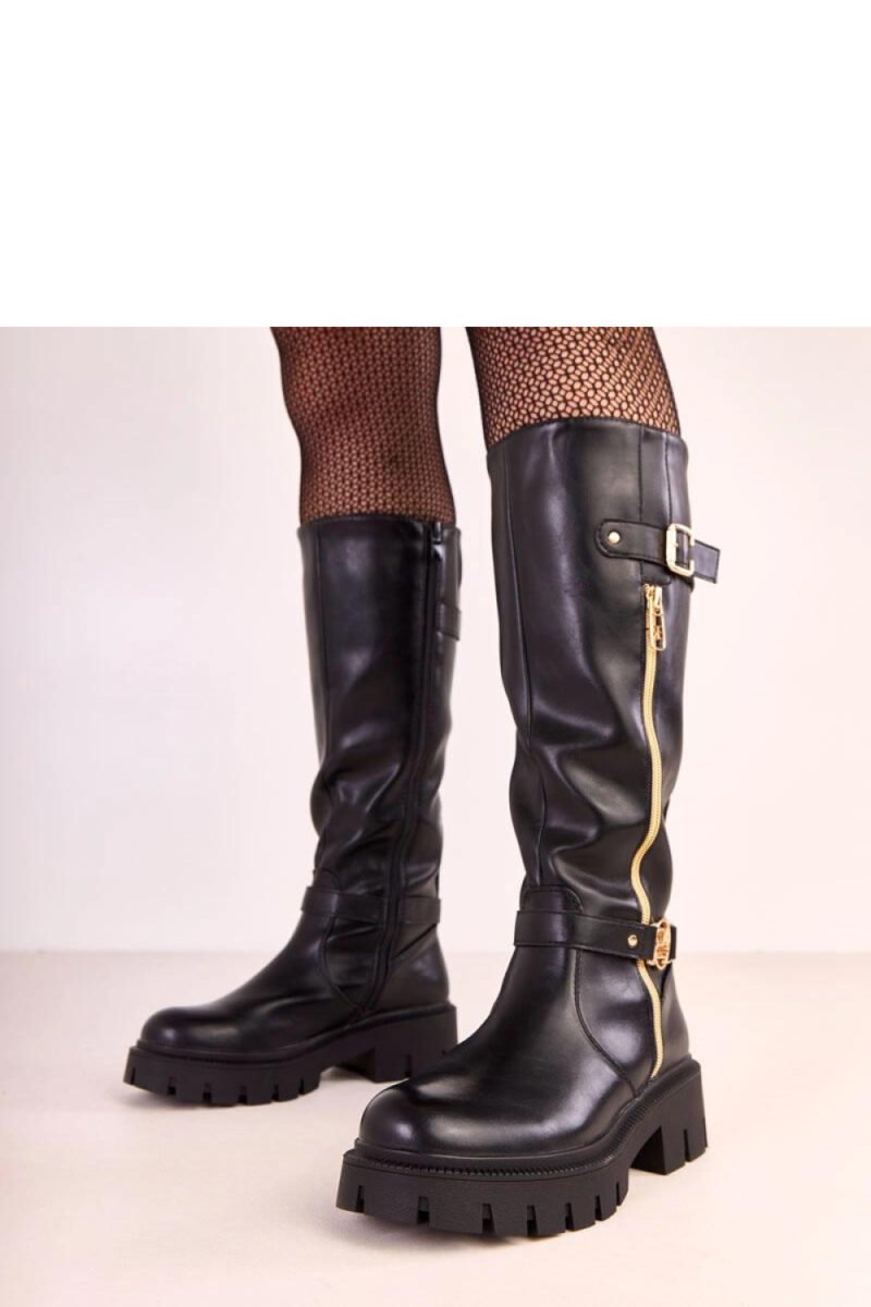 Stylish knee-high boots that combine elegance with functionality. Made of high-quality vegan leather, they look extremely tasteful and are an ideal choice for colder days. The model stands out with a decorative gold zipper and subtle gold details on the outer side, giving the whole a modern, feminine character. Thanks to the full zipper on the inner side, the shoes are easy to put on, and the round toe provides comfort while wearing. The interior has been delicately insulated, guaranteeing warmth in the autumn-winter season. The stable 5 cm heel and low platform ensure comfort and a subtle lift of the silhouette, while the 34 cm shaft beautifully fits the leg. These classic, high boots will perfectly complement both everyday and elegant stylizations.