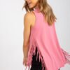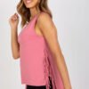 Sleeveless summer T-shirt with a heart neckline. Decorative tassels on the sides, back of the shirt extended.