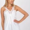 A chemise made of imitation satin, with shoulder straps, a heart-shaped neckline trimmed with lace.