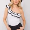 Top with asymmetrical neckline, trimmed with decorative frill. A perfect proposition for many occasions.