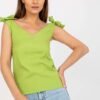 Top in a straight cut with a heart neckline. Straps of the top with decorative ties. A proposal ideal for many occasions.