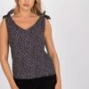 Top in a straight cut with a heart neckline. Straps of the top with decorative ties. A proposal ideal for many occasions.