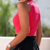 Classic crop top on thick shoulder straps with a half-round neckline is the perfect base for many stylings. Extremely stretchy, nice-to-touch ribbed knit fabric. You can use the top both on its own during the summer heat, and in combination with a ramon jacket, sweater, blazer or sweatshirt on cooler days. Top designed and sewn in Poland.