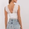 Elegant and stylish openwork top is an ideal choice for women who appreciate subtle details and fashionable character. Made of lightweight, elastic material based on polyamide and elastane, it ensures comfort and perfect fit. The short length and V-neck beautifully emphasize the silhouette, and the delicate lace adds feminine charm to the whole. The top has a lining, which guarantees comfort and certainty of wearing. Sleeveless, it will work great in summer stylizations, both combined with jeans and an elegant skirt. Perfect for everyday wear, as well as for special occasions.