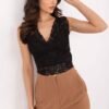 Elegant and stylish openwork top is the perfect choice for women who appreciate subtle details and a fashionable character. Made of lightweight, elastic material based on polyamide and elastane, it provides comfort and perfect fit. The short length and V-neck beautifully emphasize the silhouette, and the delicate lace adds feminine charm to the whole. The top has a lining, which guarantees comfort and confidence when wearing. Sleeveless, it will work great in summer stylizations, both paired with jeans and an elegant skirt. Perfect for everyday wear, as well as for special occasions.