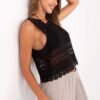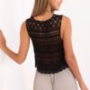 Top in boho style is a perfect choice for lovers of trendy and lightweight stylizations. Made of dominant material, cotton with added elastane, it provides comfort and subtle fitting to the silhouette. The characteristic, varied texture of the material and intricately made lace details give it a unique, ethereal look. The round neckline and sleeveless design make this model perfect for summer outfits with both jeans and a flowing skirt. The standard length of the top allows for easy styling, and the boho vibe adds a casual charm. Perfect for walks, festivals or outdoor meetings during holidays.