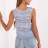 Top in boho style is a perfect choice for lovers of fashionable and light stylizations. Made of dominant material, cotton with elastane, it ensures comfort and subtle fit to the silhouette. The characteristic, diverse texture of the material and intricately made lace details give it a unique, ethereal look. The round neckline and sleeveless design make this model perfect for summer outfits, both with jeans and a flowing skirt. The standard length of the top allows for free styling, and the boho vibe adds a nonchalant charm to it. Ideal for holiday walks, festivals, or outdoor meetings.