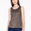 Light suede shoulder blouse with half-round neckline. Model with a loose cut, great for everyday styling.