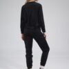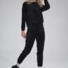 Velour sweatpants, without pockets, wide rubber band at waist and bottom.