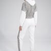 Sporty pants with piping, no pockets, wide elastic waistband and leg bottom.