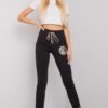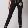 Women’s black tracksuit bottoms with a print. Adjustable elastic waistband with a drawstring.