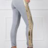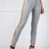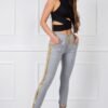 Women’s sweatpants with an elastic waistband and binding. Pants with decorative contrasting stripes on the sides and slip pockets.