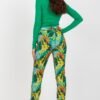 Women’s sweatpants with an elastic waistband and a drawstring tie. Slide pockets on the sides. Pants made of patterned fabric.