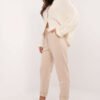 Elegant sweatpants that combine comfort with sophisticated style, ideal for both casual, work and formal occasions. Made from a blend of viscose, nylon and elastane, they provide comfort and flexibility. The high rise and waist tie accentuate the silhouette, while the straight legs add a classic look. Side slip pockets provide practicality, and the entire surface of the pants is decorated with subtle rhinestones, giving them elegance and originality. A stylish choice that will work well with a variety of styles.
